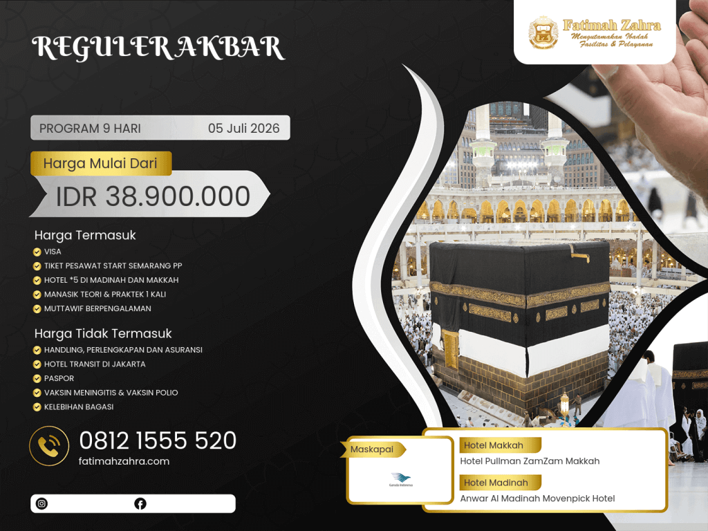 Pembatalan/ganti tanggal keberangkatan 9 hari sebelum keberangkatan dikenai biaya pembatalan sebesar 100% dari harga paket